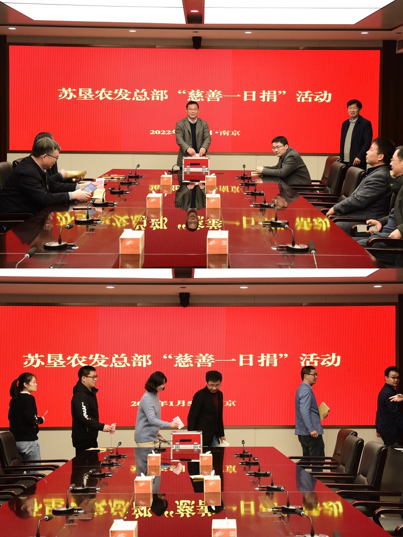 • 为动员广大党员干部员工积极参与慈善公益活动,关爱困难弱势群体,巩固脱贫成果,促进共同富裕。1月5日上午,苏垦农发总部组织开展了“巩固脱贫成果,助力乡村振兴”为主题的“慈善一日捐”活动。
