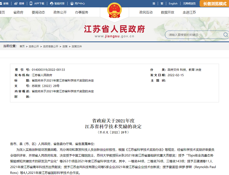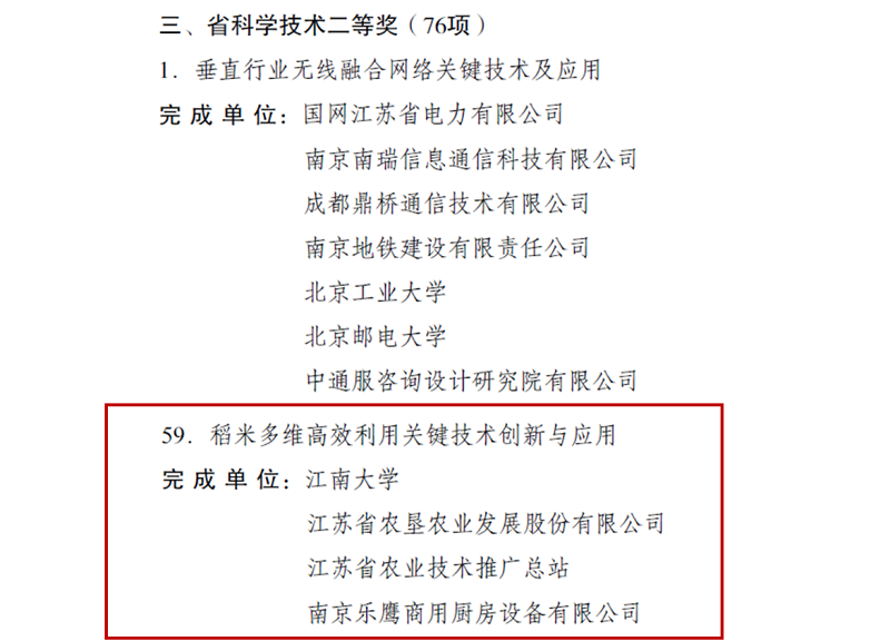 近日,江苏省人民政府发布《省政府关于2021年度江苏省科学技术奖励的决定》(苏政发〔2022〕28号),江苏省农垦农业发展股份有限公司与江南大学等单位合作研发的“稻米多维高效利用关键技术创新与应用”成果荣获二等奖,这是苏垦农发公司组建以来首次获得该奖励,彰显公司在农产品精深加工领域内突出的研发能力和创新潜质。