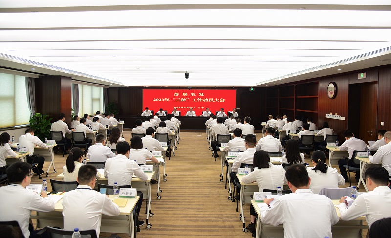 9月28日上午,为贯彻落实集团公司第二次党代会精神,高质量完成“三秋”各项工作任务,苏垦农发股份公司召开2023年“三秋”工作动员大会。集团公司总经济师、苏垦农发党委书记、董事长朱亚东主持会议并讲话,苏垦农发副总裁(牵头经营层工作)丁涛作“三秋”工作动员报告。