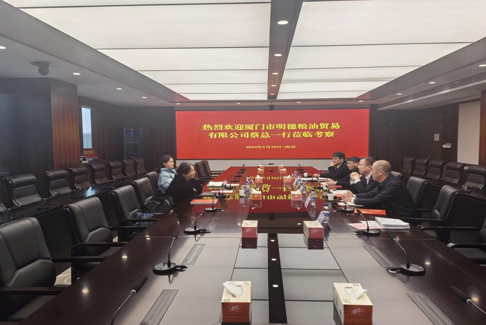 •        1月19日,厦门市明穗粮油贸易有限公司副总经理、财务总监蔡川珊一行到苏垦农发考察交流。集团党委委员、苏垦农发副总裁(牵头经营层工作)丁涛出席座谈会。