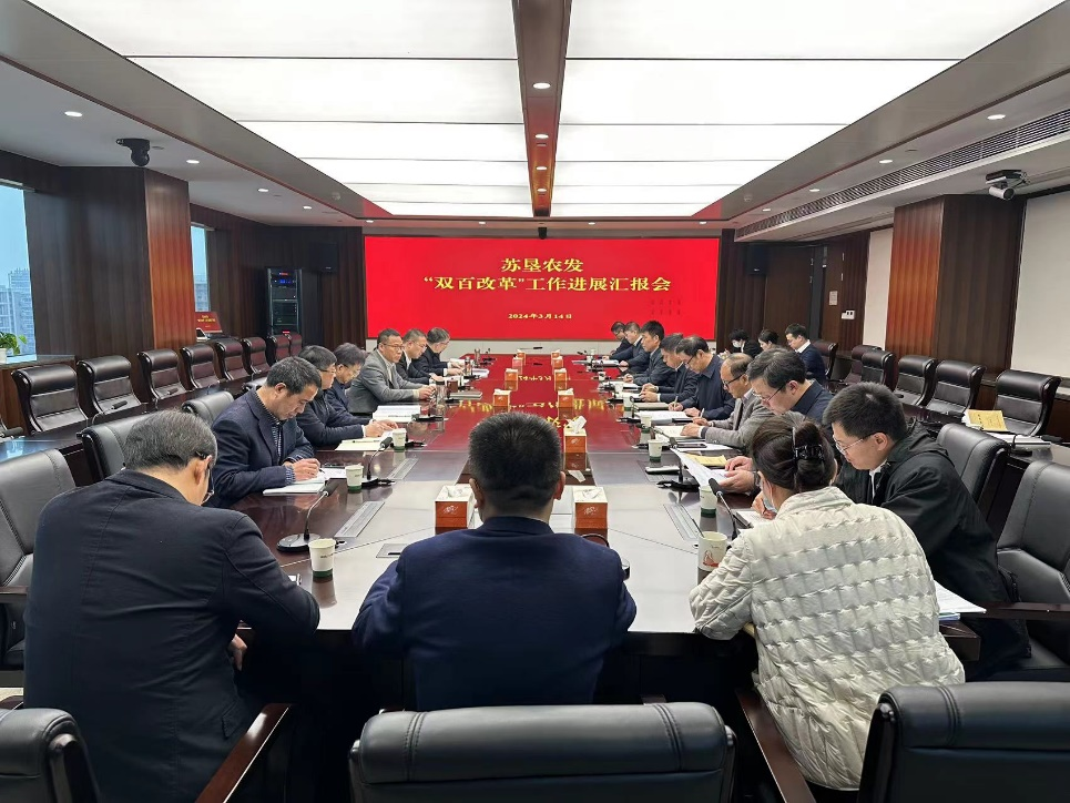 3月14日,苏垦农发召开“双百改革”工作进展汇报会,集团总经济师、苏垦农发党委书记、董事长朱亚东主持会议并讲话。大华种业、苏垦米业、苏垦农服、苏垦农科院、总部各部门分别汇报“双百改革”任务进展情况。