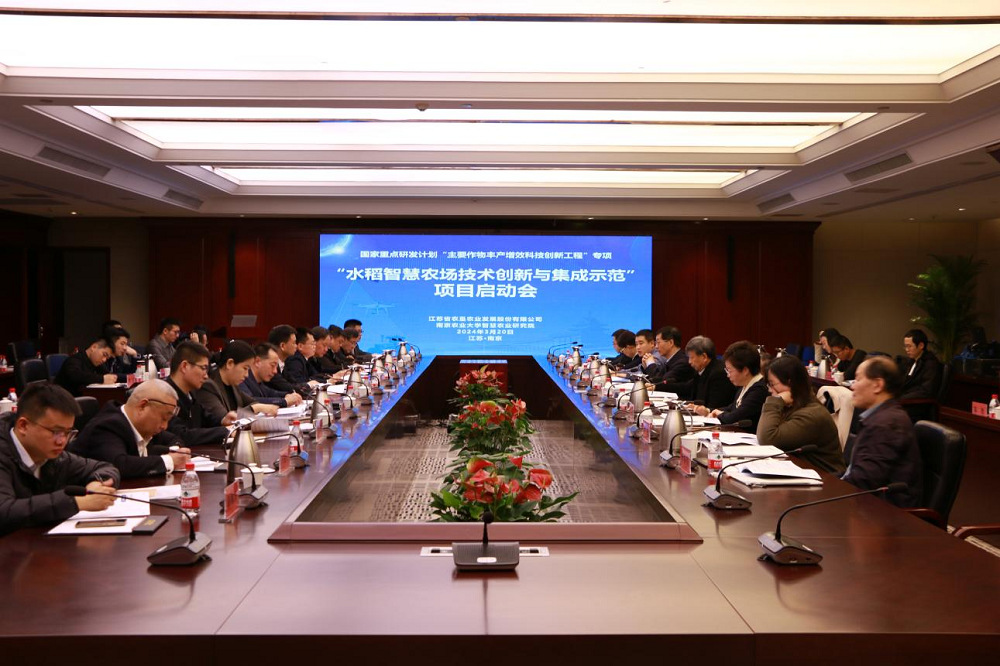 3月20日,由江苏省农垦农业发展股份有限公司牵头,南京农业大学、扬州大学、中国农业科学院、东北农业大学、北京市农林科学院、农业农村部南京农业机械化研究所、上海联适导航等单位共同承担的“十四五”国家重点研发计划“主要作物丰产增效科技创新工程”重点专项“水稻智慧农场技术创新与集成示范”项目(2023YFD2300500 )启动会在南京顺利召开。