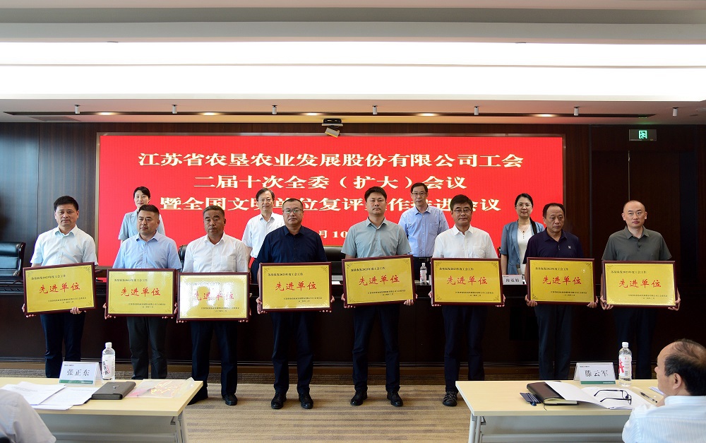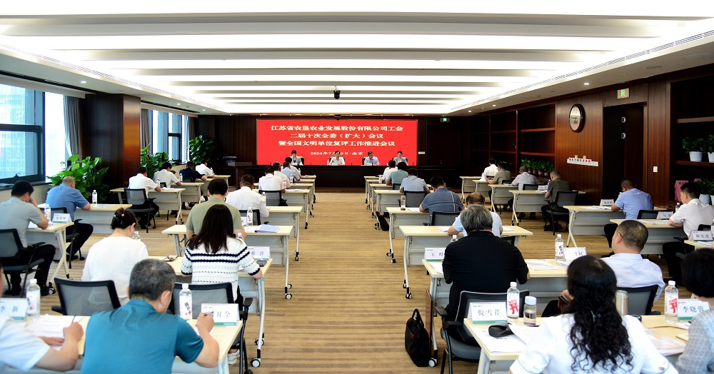 •        7月10日,苏垦农发工会在南京召开二届十次全委(扩大)会议暨全国文明单位复评工作推进会议,会议总结交流2023年工作、表彰先进,全面部署2024年工会工作重点任务,并就全国文明单位复评迎检工作作出进一步安排。公司党委副书记、工会主席王进强出席会议并讲话。