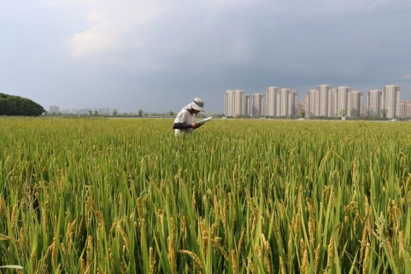 (苏州苏垦陆家园区基地队长陆永查看虫情)