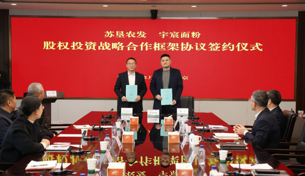 •        12月26日,苏垦农发与宇宸面粉股权投资战略合作框架协议签约仪式在南京举行。集团公司总经济师、苏垦农发党委书记、董事长朱亚东和宇宸面粉董事长陆飞分别进行致辞。集团公司党委委员、苏垦农发总裁丁涛主持签约仪式。