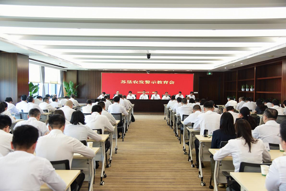 •        6月26日,苏垦农发召开2025年警示教育会,会议深入学习贯彻习近平总书记关于加强党的作风建设的重要论述和中央八项规定及实施细则精神,落实全省、集团警示教育会议部署要求,通过深度剖析典型案例,推进深入贯彻中央八项规定精神学习教育走深走实,教育引导党员干部知敬畏、守底线,持续巩固风清气正、干事创业的政治生态,为苏垦农发各项事业的稳步推进提供坚实保障。集团总经济师,苏垦农发党委书记、董事长朱亚东出席会议并讲话,集团党委委员,苏垦农发党委副书记、总裁丁涛主持会议。公司领导班子成员,子公司领导班子成员,各部门副总经理及以上人员,大华种业、苏垦米业、苏垦农服3家单位的财务、审计、人力资源、纪委办负责人,总部全体工作人员参加会议。